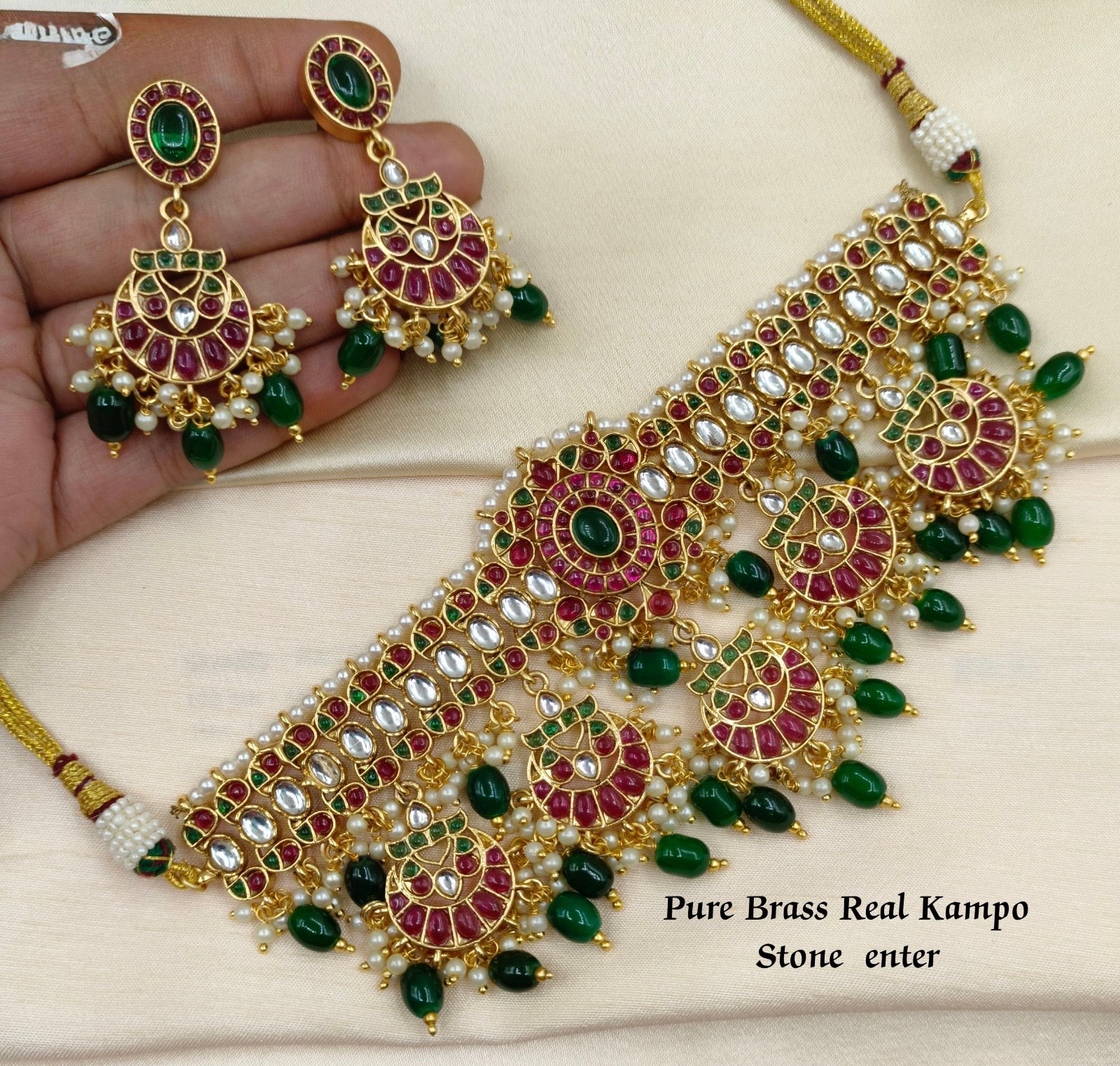 Kemp real stones chokerThe Lavi Choker features exquisite brass and real stone materials, including Kemp stones. This beautifully crafted choker adds a touch of elegance to any outfit. Enjoy the benefits of high-quality materials and sophisticated design with the Lavi Choker.